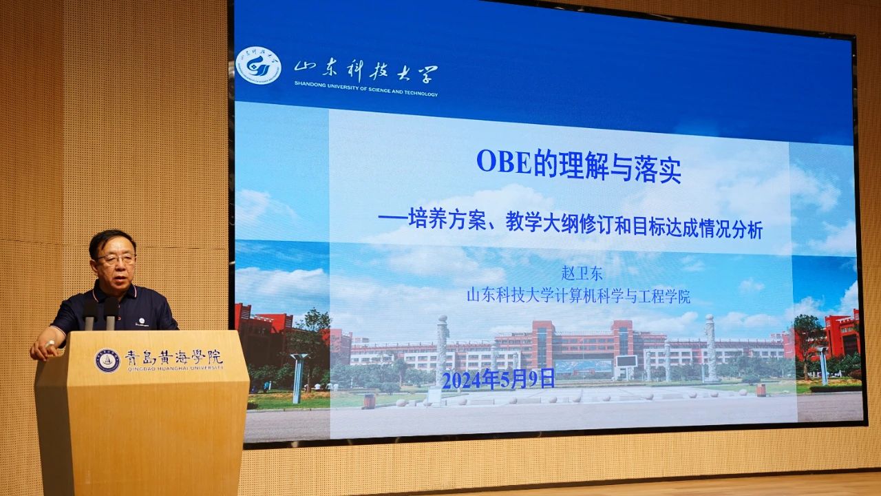为做好2024年本科审核评估的各项工作,学院坚持“以评促建、以评促改、以评促管、以评促强”的方针,全面开展自评自建工作,切实推进大数据学院的内涵式发展,为提升大数据学院的人才培养质量,郑永果院长邀请山东科技大学计算机科学与工程学院副院长赵卫东于2024年5月9日下午在知信楼306报告厅做了一场主题为《OBE的理解与落实——培养方案、教学大纲修订和目标达成情况分析》报告。出席本次报告的有孙守强副院长、李鹏院长助理,各系部主任及全体任课教师。