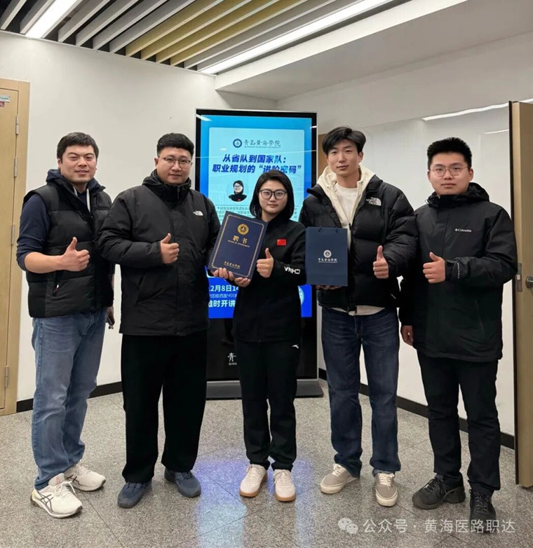 2024年10月,她顺利通过评审,获聘山东省体育局运动防护师职称,这是对她专业能力的高度认可。武晓悦鼓励同学们夯实专业基础、积极把握实习与升学机会,并强调:“康复治疗不仅是技术,更是责任与热爱的结合。”她的成长轨迹为在校生提供了宝贵的职业参考,彰显了黄海学院康复治疗学专业人才培养的卓越成效。