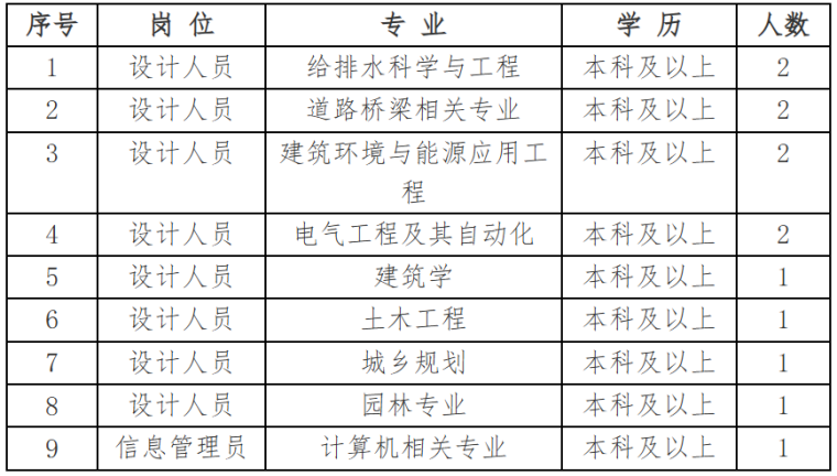 本院下设四个管理部门为设计管理部、总工办、办公室(人力资源部)和财务部,五个分院,一个项目管理分公司,一个造价所。其中,一分院主要从事给水、排水、环卫专业设计,二分院主要从事道路、桥梁、公路专业设计,三分院主要从事热力、燃气、压力管道专业设计,四分院主要从事规划、园林景观专业设计,五分院主要从事建筑设计。项目管理分公司主要承担工程监理、项目管理和全过程咨询服务工作。造价所主要承担各阶段造价咨询业务。本院具有给水、排水、环卫、道路、桥隧、热力、燃气、压力管道、风景园林、规划、建筑设计、监理资质和一流的设计、监理人才,同时开展以上各专业的工程咨询、节能评估及项目全过程管理。