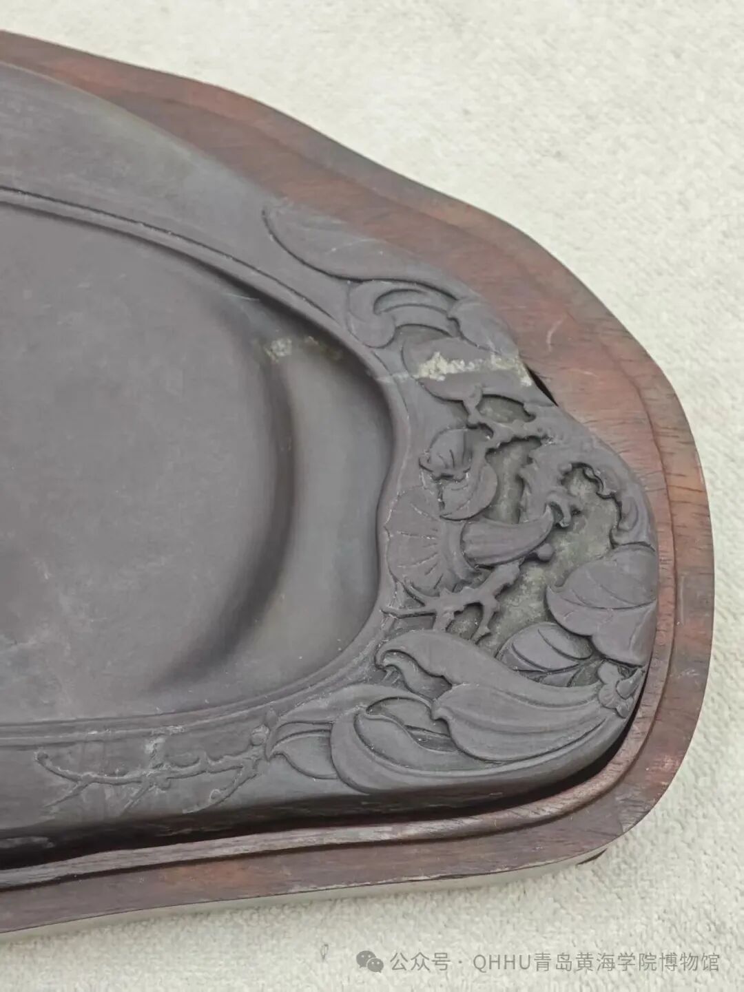 一同捐赠的白端赏石,同样独具韵味。白端石作为端砚石材中的珍品,质地细腻温润,色泽莹白纯净,肌理自然天成,无需过多雕琢便自带清雅之气,是文房陈设、赏玩收藏的上佳之选。它与老坑玉兰砚相映成趣,一文一赏,一用一观,既展现了中华文房器物的多样性,也传递出古人“文以载道、器以载情”的人文情怀。