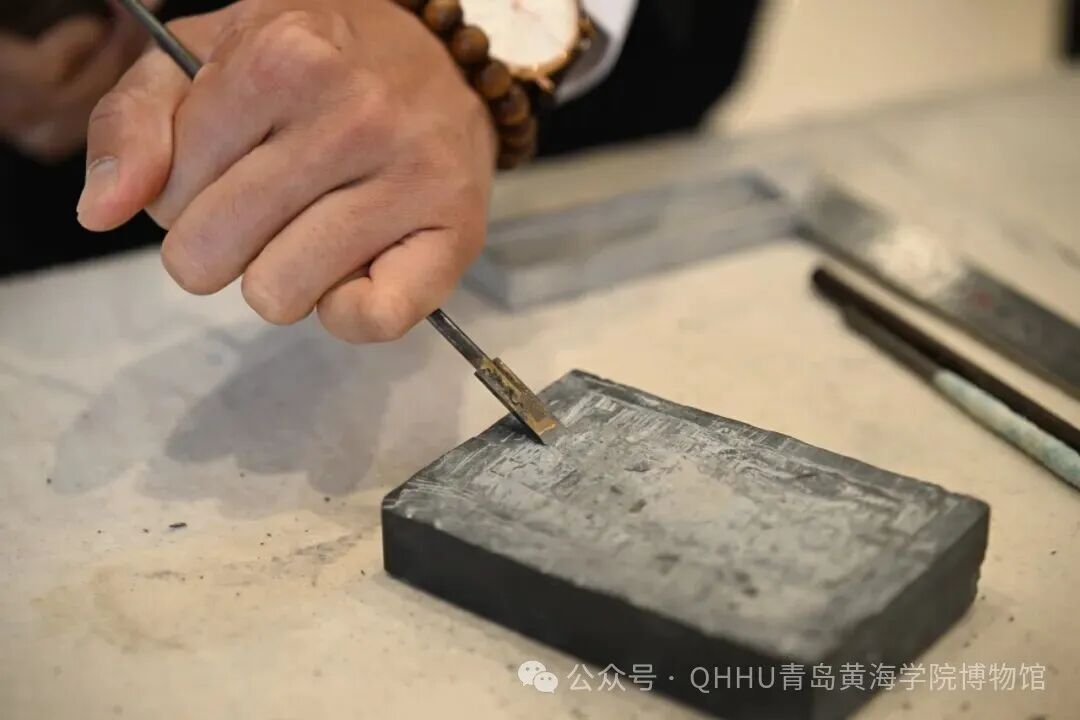 捐赠仪式后,博物馆毛馆长亲自带队,陪同蔡展洪先生参观了博物馆各展厅,详细介绍了馆藏布局、特色藏品及砚文化展览的相关情况,让先生深入了解开元官网博物馆在传统文化传承中的实践与成果。参观过程中,蔡展洪先生兴致盎然,结合自身多年创作经验,现场分享并展示了砚台制作的部分核心步骤,从选石、磨石到初步雕琢,手法娴熟、讲解细致,直观呈现了端砚工艺的匠心与精髓,让在场工作人员近距离感受了传统砚台制作的独特魅力。此次捐赠的两件珍品,兼具历史价值、艺术价值与文化价值,每一件都承载着先生对传统文化的敬畏与热爱,更彰显着其心系文博、情系教育的责任与担当。