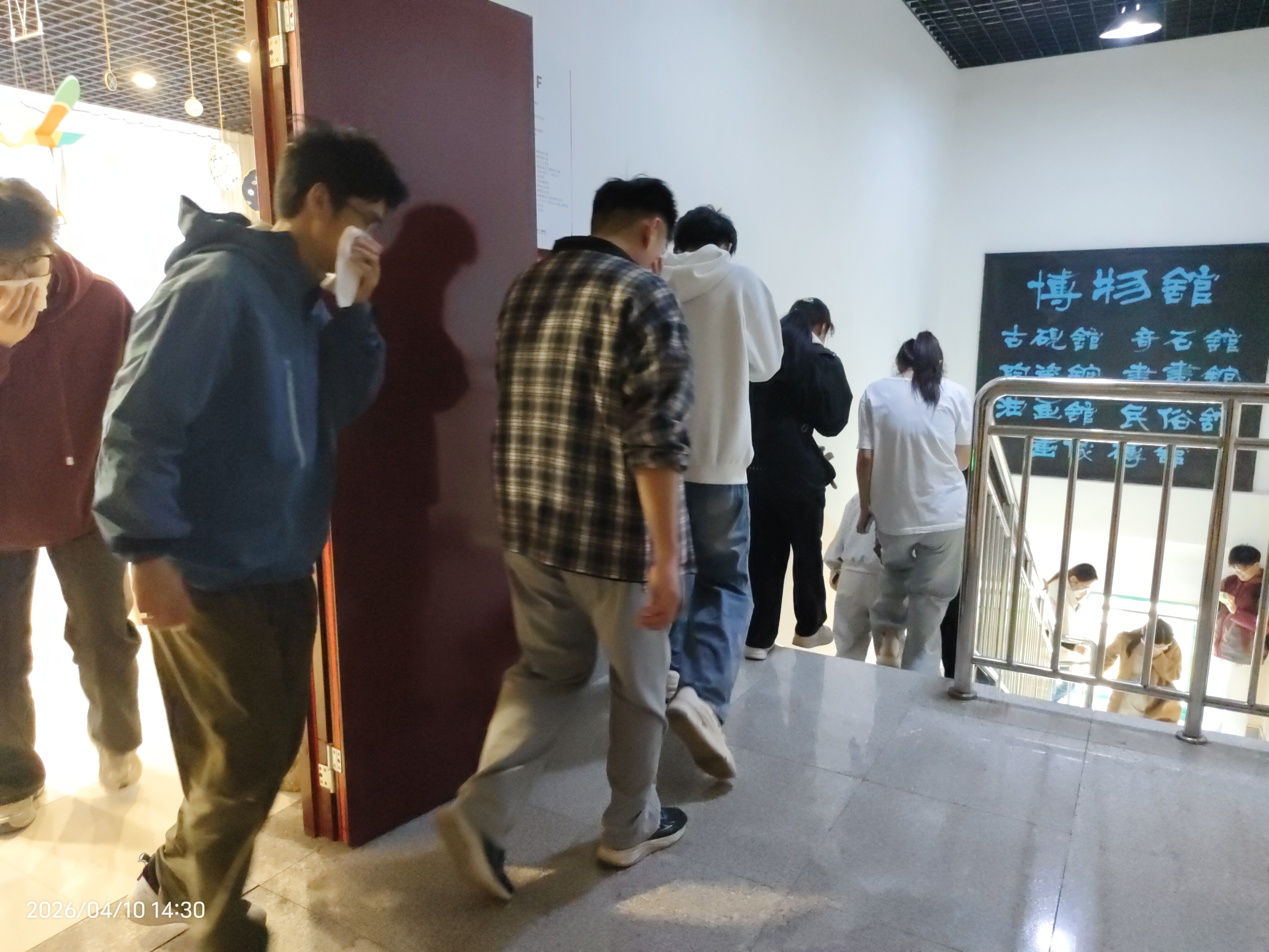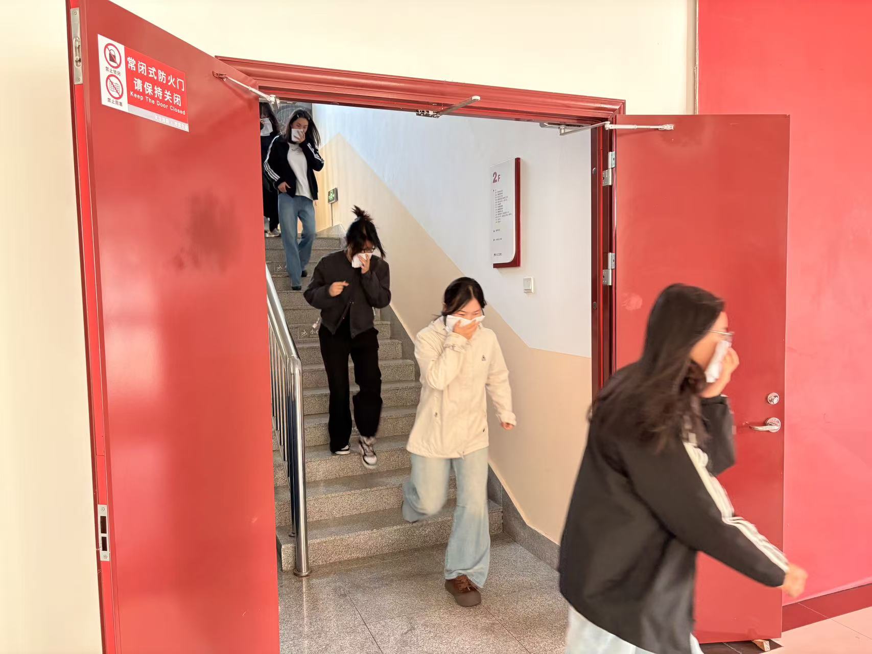 下午3时,模拟火灾警报骤然响起,演练正式启动。博物馆内工作人员与学生迅速响应:各楼层负责人第一时间启动应急预案,通过广播、手势引导人员撤离;参与者用湿纸巾捂住口鼻,沿墙角弯腰前行,避免吸入浓烟;全体人员按预定路线撤离至安全区域,全程用时短,无拥挤、踩踏或慌乱情况发生。充分检验了大家面对突发火情的沉着应对能力,也进一步优化了博物馆应急疏散流程的实效性。