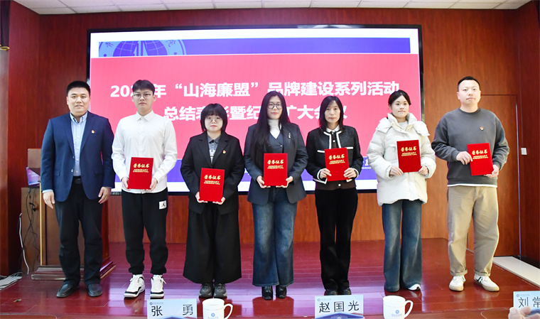 会上,校纪检委员周萍宣读《关于表彰2025年度“山海廉盟”品牌建设系列活动获奖师生及集体的决定》。与会领导依次为获奖的集体和个人颁发荣誉证书。
