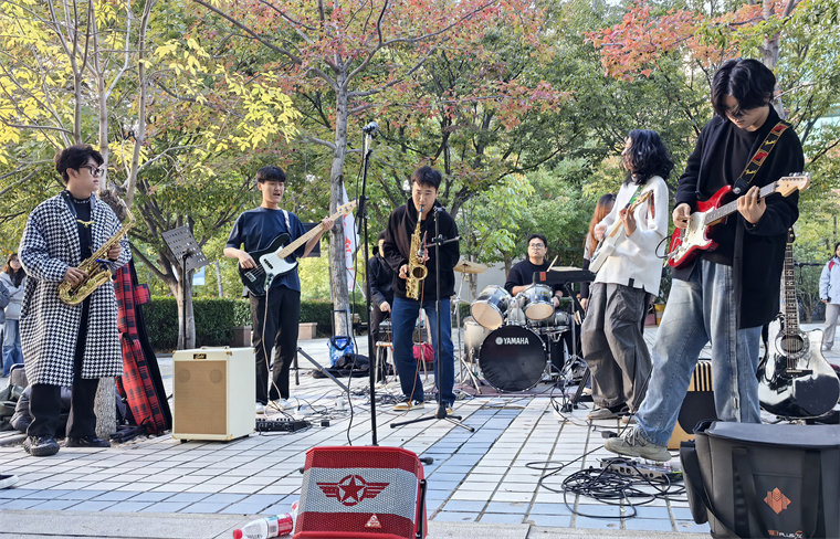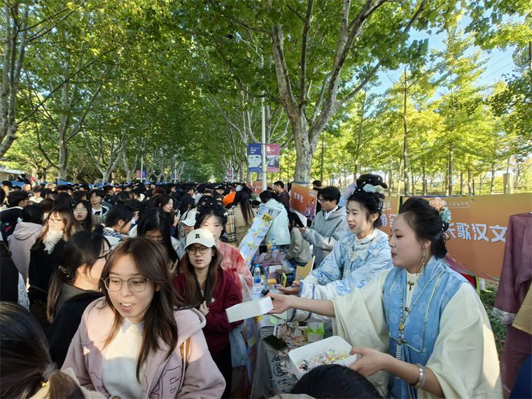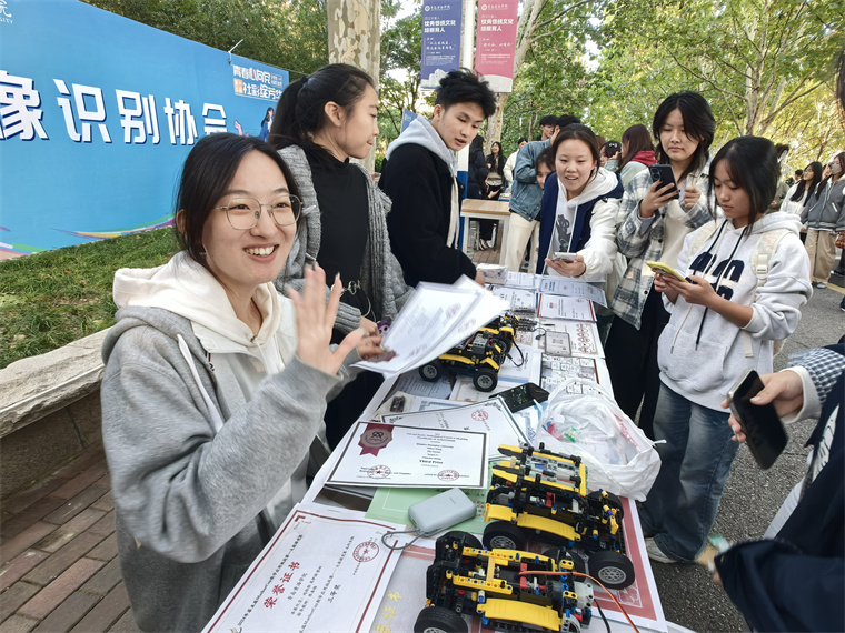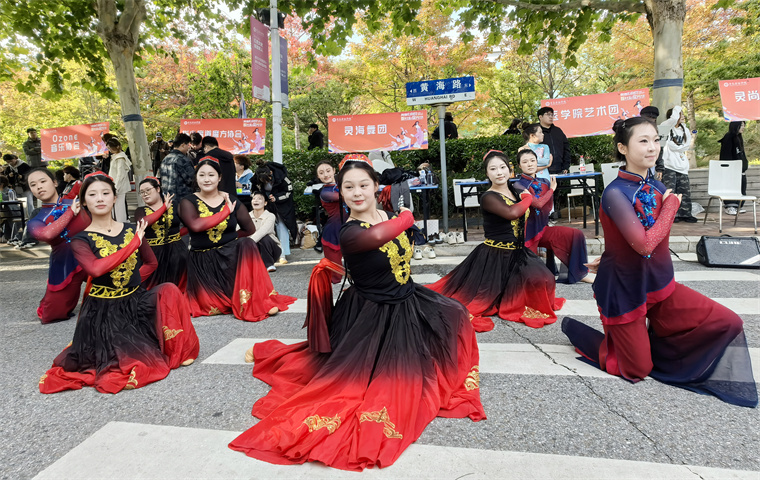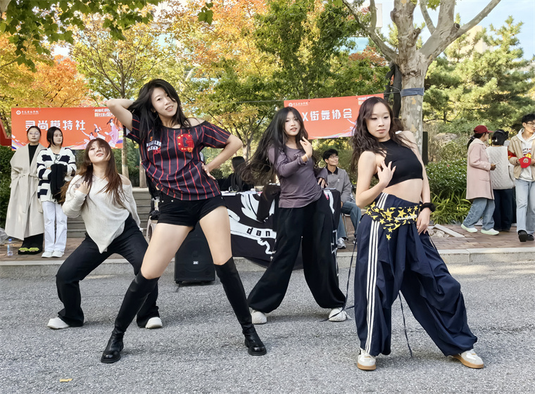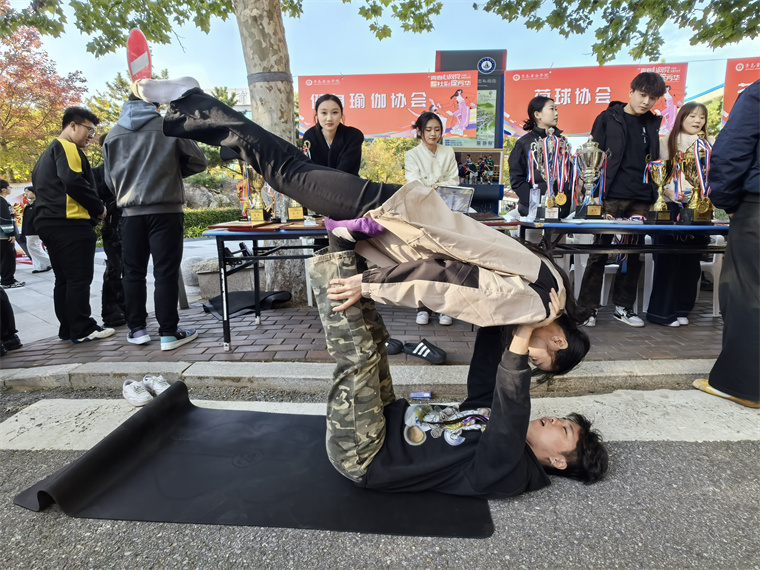 茶艺社的成员举着茶杯来回招呼;瑜伽社团现场表演高难度动作,引来阵阵惊呼;街舞社团热力四射的舞蹈,吸引了一串手机镜头拍摄……,赞叹声、笑声裹着秋日暖阳,连空气里都飘着热闹劲儿!