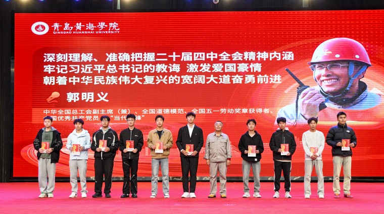 随后,郭明义作了题为《深刻理解、准确把握党的二十届四中全会精神内涵 牢记习近平总书记的教诲 激发爱国豪情 朝着中华民族伟大复兴的宽阔大道奋勇前进》的专题报告。他的报告思想深邃、内涵丰富、情感真挚,既是一场系统全面的理论辅导,也是一次涤荡心灵的理想信念教育,更是一堂激励我们勇担时代使命的爱国主义公开课。