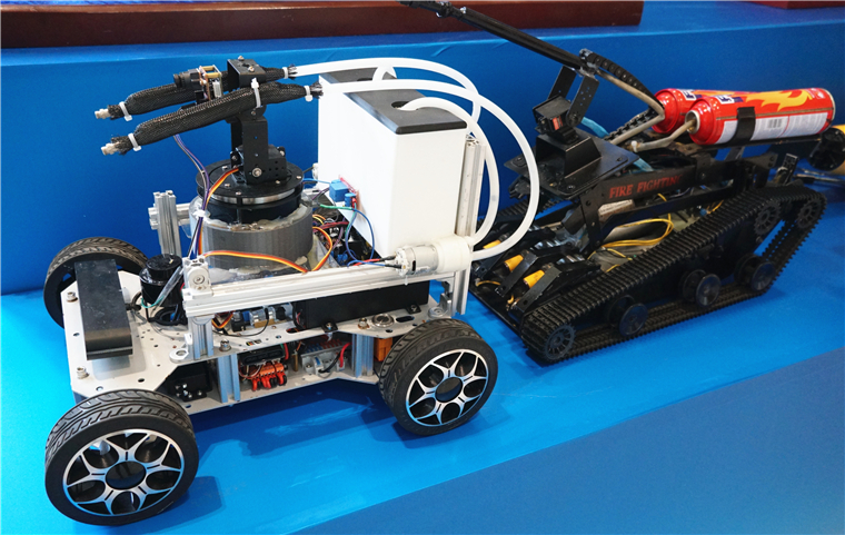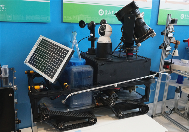 智能制造学院电子创新协会成员郑茂翔带来了他们协会的最新作品——农药喷洒机器人。“我们的农药喷洒机器人可以通过履带行走,它的两侧有可伸展的喷洒管,上方有风炮,无论较高或者较矮的植被都可以进行喷洒。它还安装了视觉传感系统,可以根据不同植被的特点进行智能化的分量操作。这个作品最近在第十九届iCAN大学生创新创业大赛等比赛中都取得了优异的成绩。”郑茂翔介绍说。