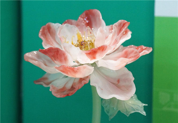 在创新创业文化展区,一组栩栩如生的琉璃花卉展品吸引了大家的目光。这组展品的作者,影视学院2025级动漫设计专业学生杨一帆介绍说:“我来自中国琉璃之乡淄博,师从齐鲁首席技师、山东省工艺美术大师宋苗。来到黄海学院求学,我想通过琉璃创业的想法也得到了学校的大力支持,为我提供了免费的工作室场地,还有今天科技文化节的展位,让我这个大一新生敢于迈出创业第一步。我认为玻璃是材质,琉璃是艺术,我有信心让传统琉璃技艺在校园生根发芽,甚至走向更大的舞台。”