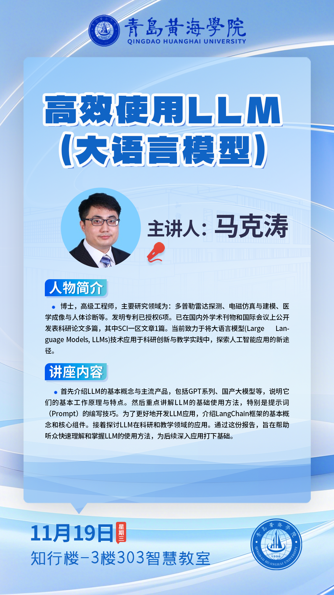 讲座地址:知行楼-3楼303智慧教室