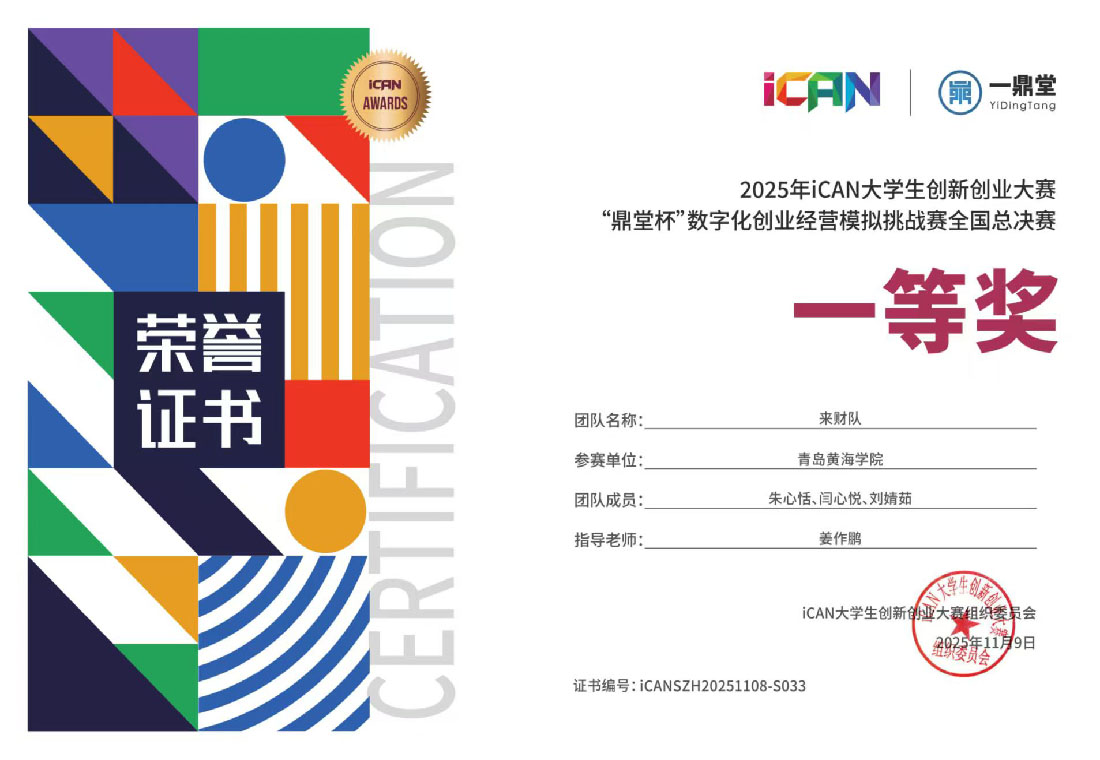 2025年iCAN大学生创新创业大赛“鼎堂杯”数字化创业经营模拟挑战赛全国总决赛一等奖