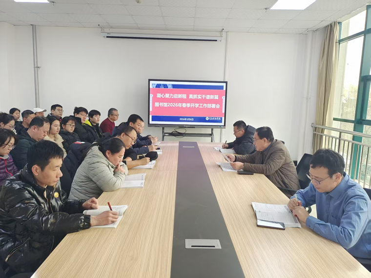 3月8日上午,图书馆在202会议室召开2026年春季学期工作部署会,全面部署新学期重点工作,明确发展方向与任务目标。图书馆全体馆员参加会议。