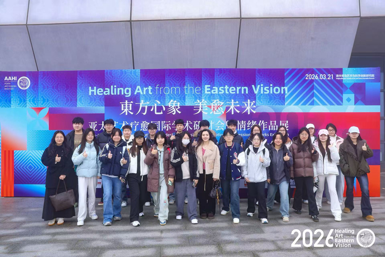 2026年3月21日在清华青岛艺术与科学创新研究院举办“东方心象·美愈未来——亚太艺术疗愈国际学术研讨会暨情绪作品展”,设计与美术学院院长邵力民,书法专业教师侯怡及书法系23名学生代表应邀参加此次活动。