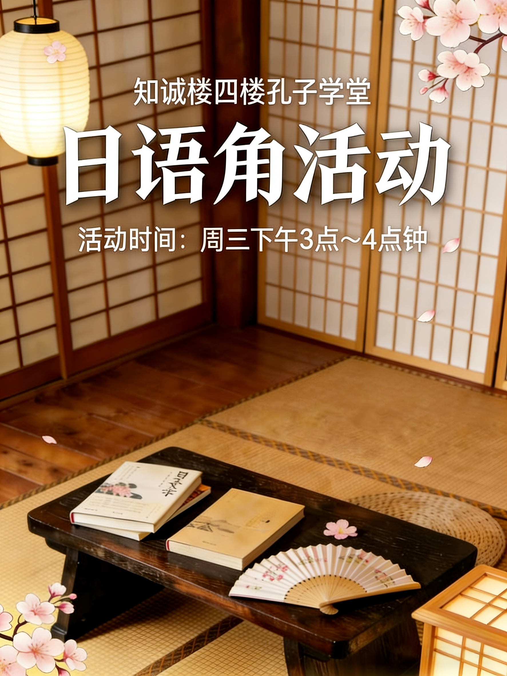 春风送暖,书香满溢,本学期日语角活动全新升级启航!我们将以日本文学阅读分享为开篇,于3月18日(本周三)15:00-16:00,在知诚楼四楼孔子学堂与大家正式见面。