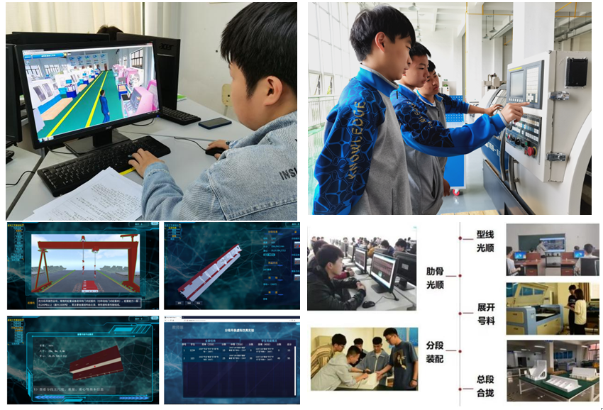 校企开发虚拟工厂软件,开展基于生产流程的实验教学;校企共建船舶建造仿真实验室,形成“虚实结合、全方位+全过程”的学习体验,2年来,该实验室已完成实验任务近6000人时数。