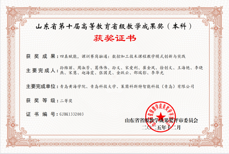 山东省高等教育省级教学成果奖是全省教育教学领域的最高奖项,每四年评选一次,旨在表彰在教学改革、研究与实践中取得卓越成效的集体和个人,引领和推动全省高等教育高质量发展。此次获奖,是对智能制造学院多年来深耕教育教学改革、创新人才培养模式的充分肯定和高度认可。