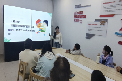 接着活动进入了互动环节,志愿者指着大屏上“吐槽大会”的卡通插画,抛出“你身边有没有像‘狐狸’这样的同学”的问题,顺势引出欺凌危害的讨论。紧接着,志愿者带着孩子们进入“陌生人求助”“独自在家应答”等仿真场景——比如假设陌生阿姨问路要孩子带路、有人敲门自称“快递员”等,引导现场的小朋友们练习“大声拒绝、立即离开、寻求帮助”的应对技巧。桌边的孩子有的皱着眉认真思考,有的小声和身边家长交流,连带着家长也跟着代入场景,琢磨起日常该怎么和孩子强化这些安全意识。