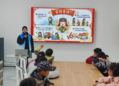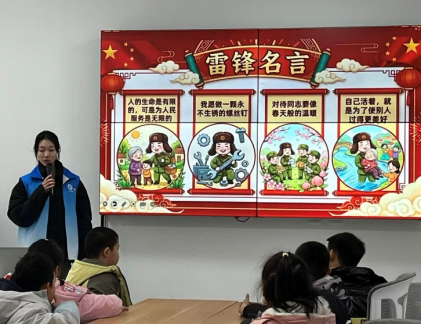 小朋友们在《学习雷锋好榜样》这首歌的在歌声里感受榜样的力量,让“向雷锋学习”的信念变得鲜活又亲切。随后,志愿者们带着孩子们品读“雷锋名言”,小朋友们在一句句质朴有力的话语里,读懂了雷锋精神的内核——是无私奉献的坚守,是爱岗敬业的执着,是待人热忱的温柔,更是舍己为人的担当。