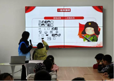 屏幕上,“雷锋故事猜词汇”“情景小判断” 等趣味环节牢牢吸引着孩子们的目光。大家在互动中认真判断哪些行为符合雷锋精神,渐渐明白:主动让座、热心帮助同学、自觉爱护环境,这些看似平凡的小事,都是践行雷锋精神的具体行动。还通过生动有趣的游戏,带领孩子们深入了解雷锋 “人民勤务员” 的感人故事。在轻松愉快的互动体验中,雷锋 “全心全意为人民服务” 的精神,如春雨般润物无声,悄悄扎根在每一位孩子的心田。