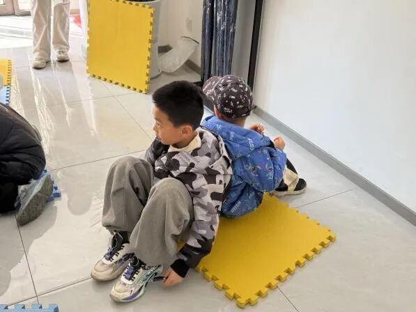 活动伊始,志愿者与小朋友通过两个小游戏拉近距离。第一个是“坐地起立”——小朋友们背对背围坐、手臂相挽,齐心协力站起来,在一次次尝试中欢呼不断。第二个是“心有千千结”:大家手拉手围圈、打乱后再找回原手,合力钻绕解结。两个游戏点燃了孩子们的热情,也让他们体会到信任与团结的力量。