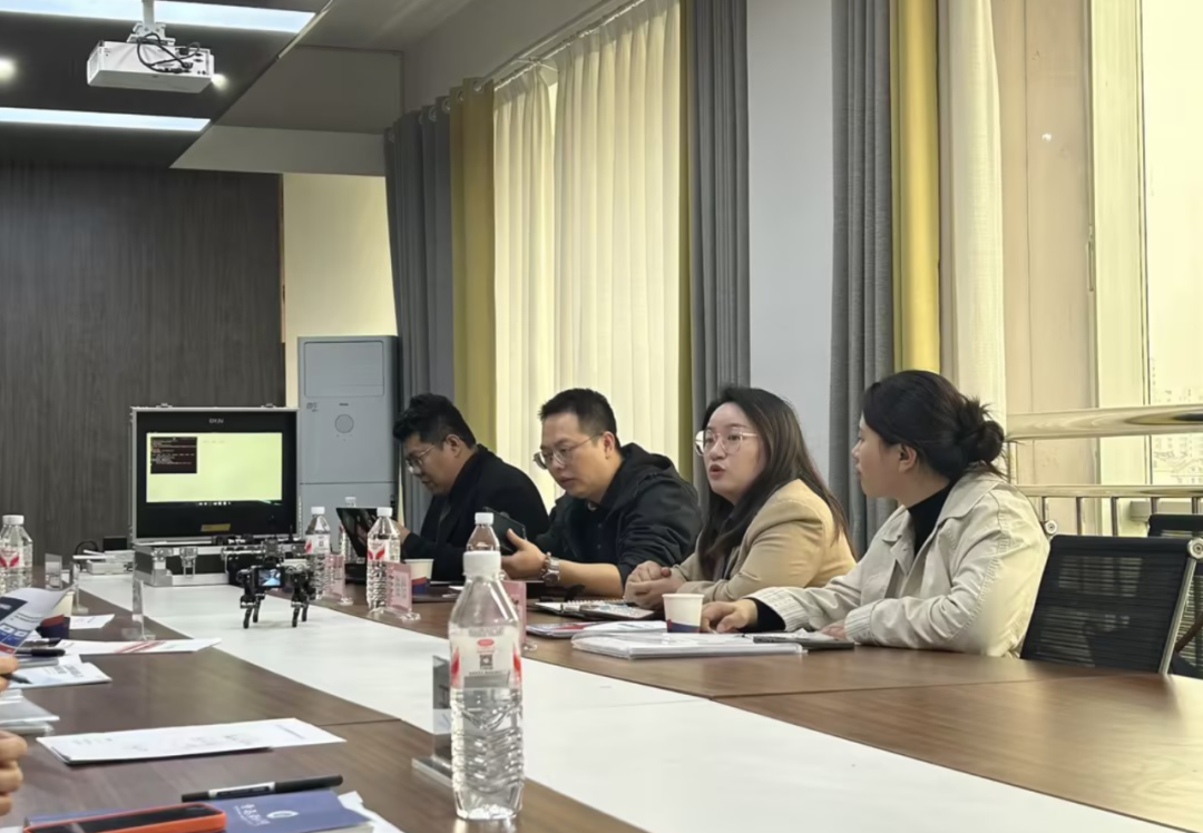 何俊峰负责人对学校的热情接待表示感谢,详细介绍了长沙典阅教育科技在人工智能教育装备、具身智能实训平台、AI 综合实验箱、课程体系开发及产业人才培养等方面的技术优势与最新成果,现场展示了新一代教学实训设备功能与应用场景。双方围绕人才培养方案优化、实践教学体系改革、集中实习就业基地建设、学生学科竞赛支持、师资培训、实验室共建共享等议题展开深入交流,就共同推进优质设备进校园、优质课程进课堂、优质项目进实践、优质岗位进就业达成多项共识。