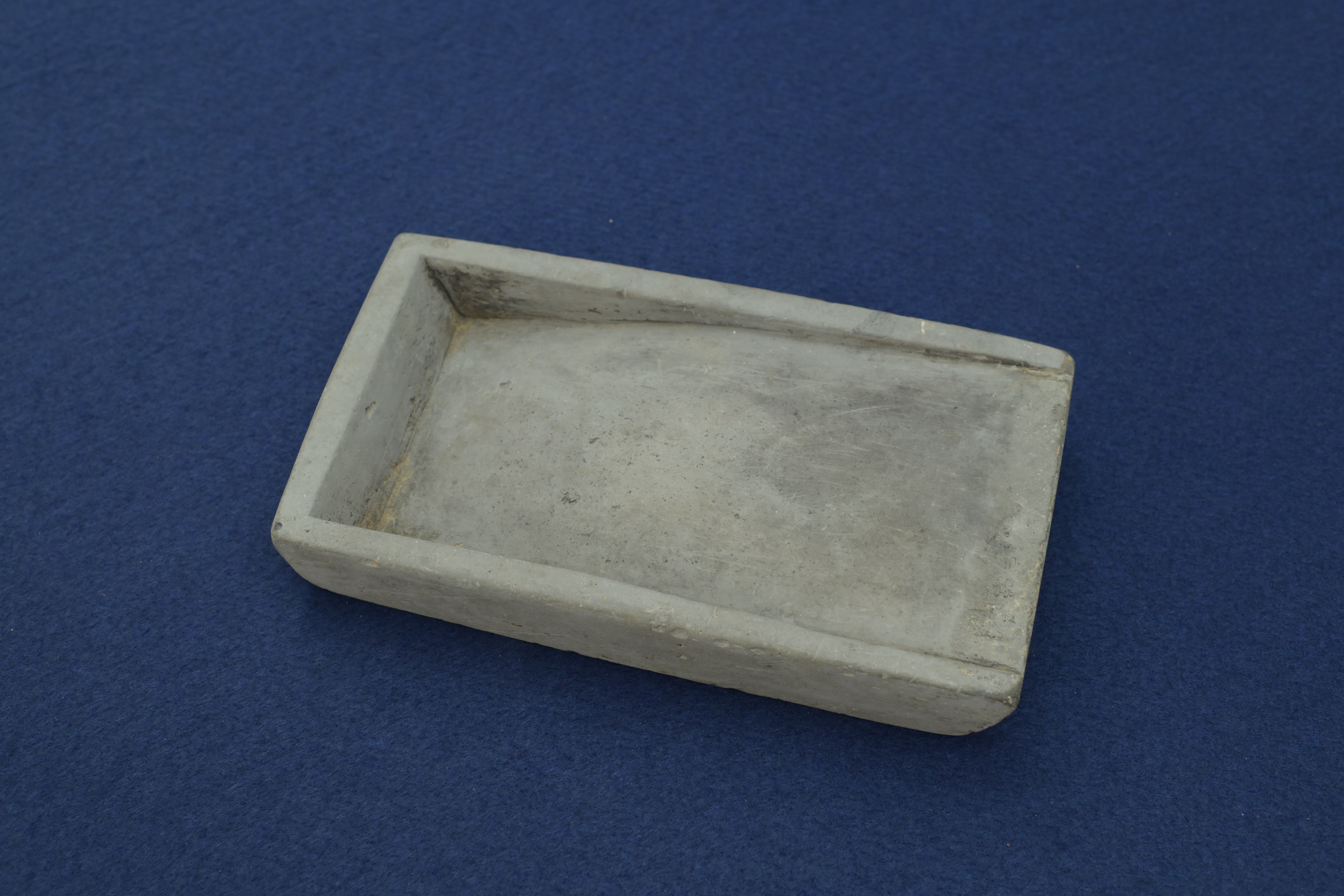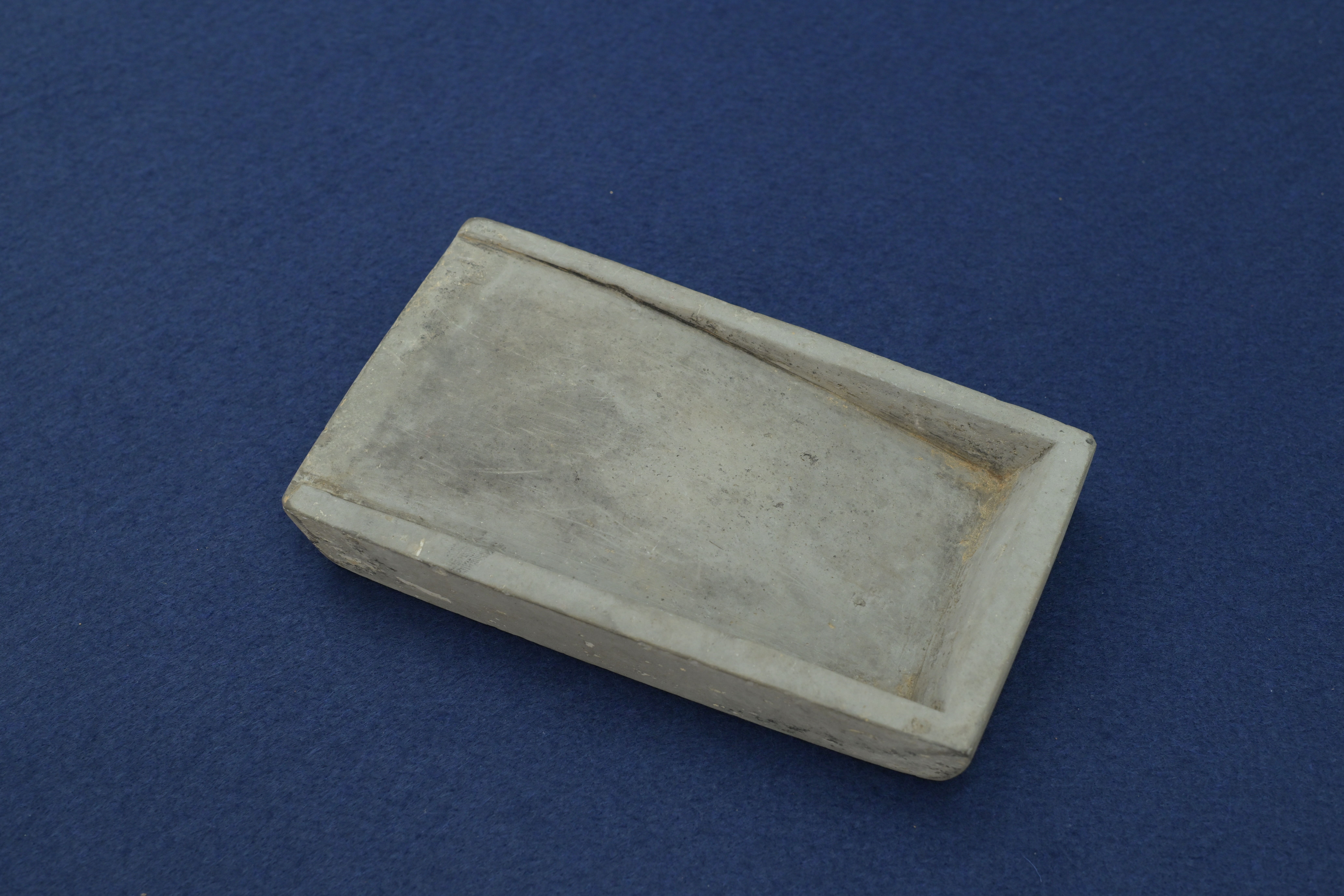这方砚台呈长方形,砚池为浅凹式,边缘起窄棱。它没有繁复的雕刻,仅以素净的线条勾勒出实用的轮廓。这种形制正是宋代文人审美 ——“极简至雅” 的体现。