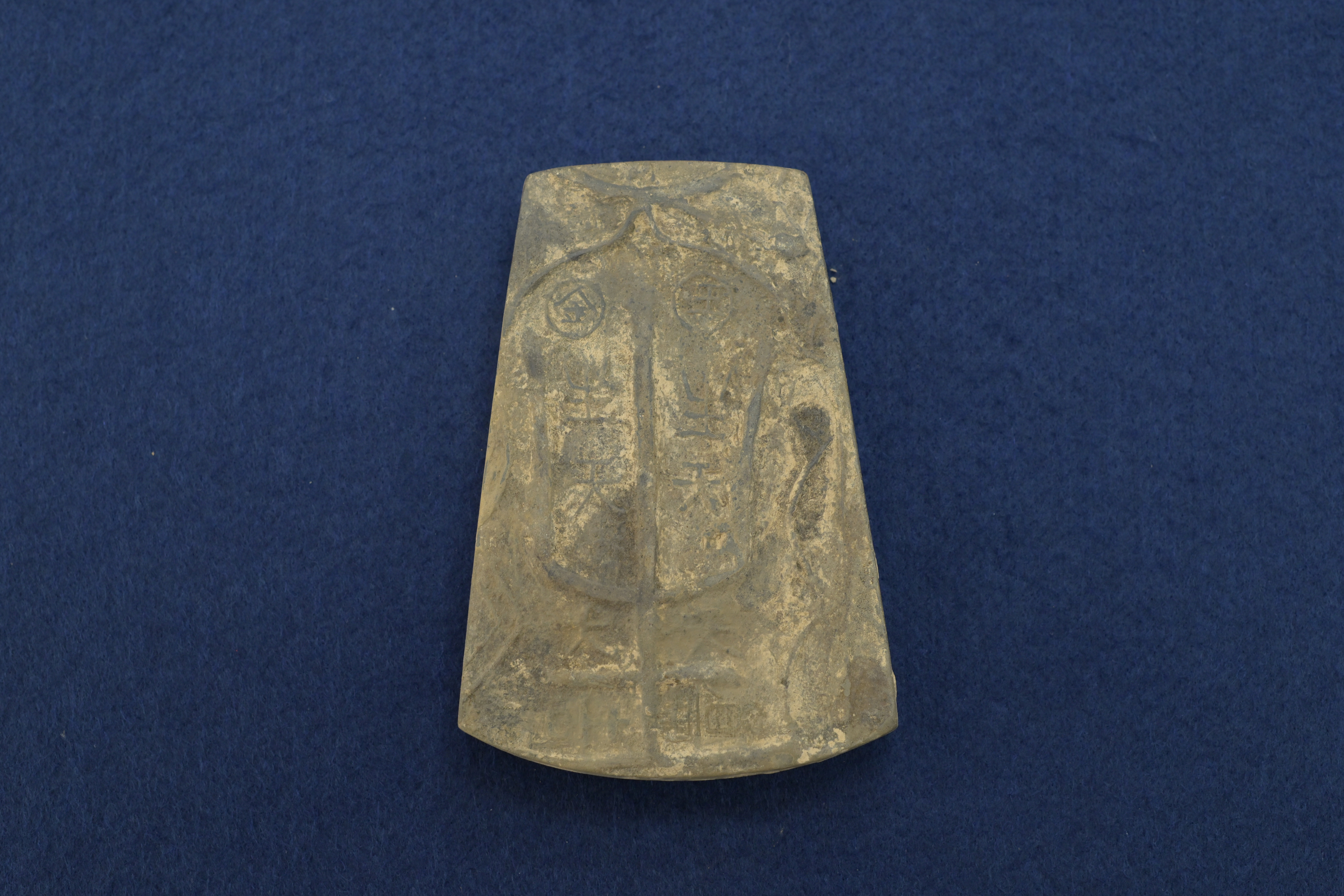 翻转砚台,最引人注目的是砚背浅刻的铭文。清晰可见 “生天” 二字,旁有 “金”“王” 等字样。其含义或为表达古人对死后世界的美好向往,也寄托了对生命永恒的祈愿。在唐代,“生天” 是佛教用语,意为 “往生天界”。这些字体为我们追溯这块古砖的来源提供了珍贵线索。