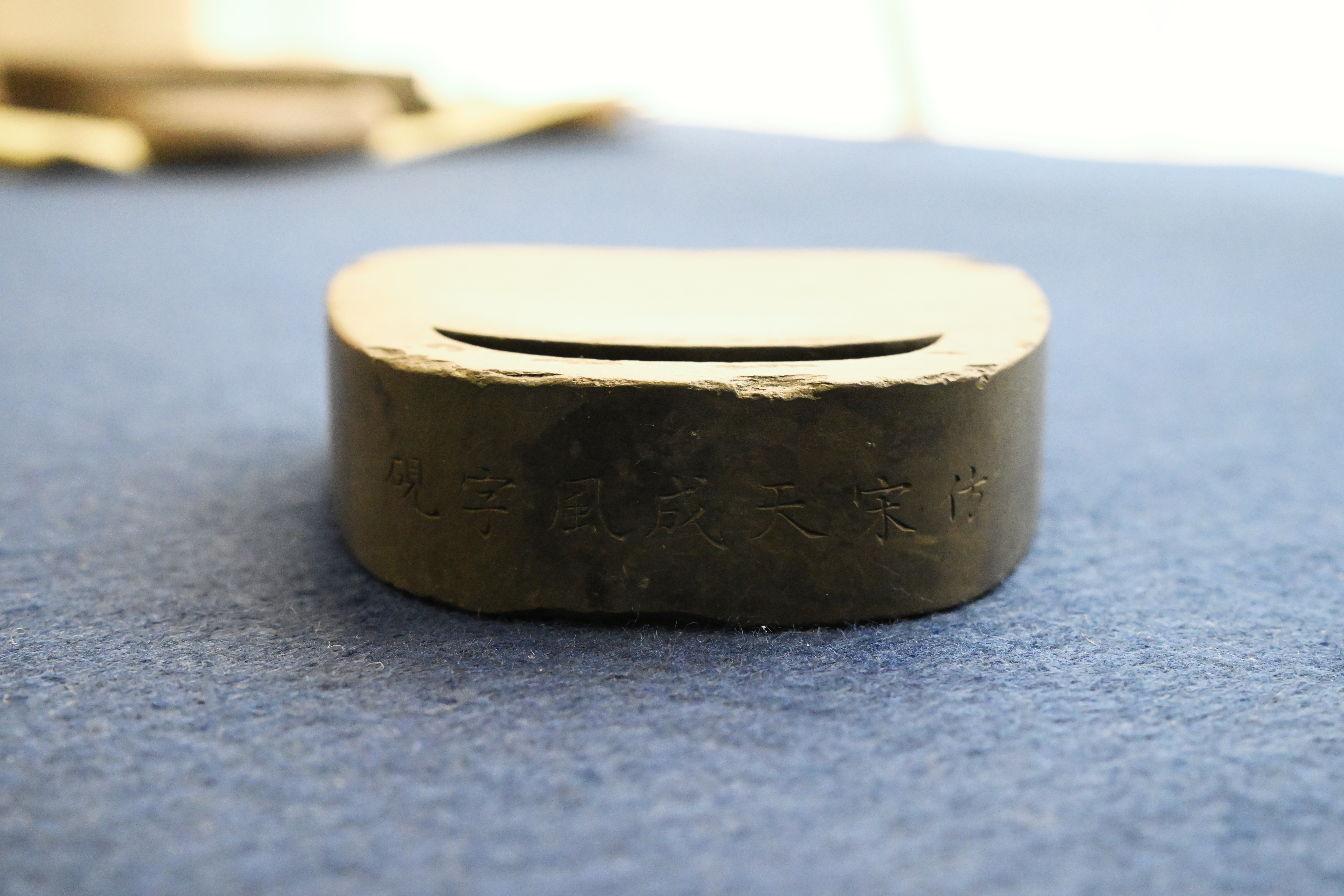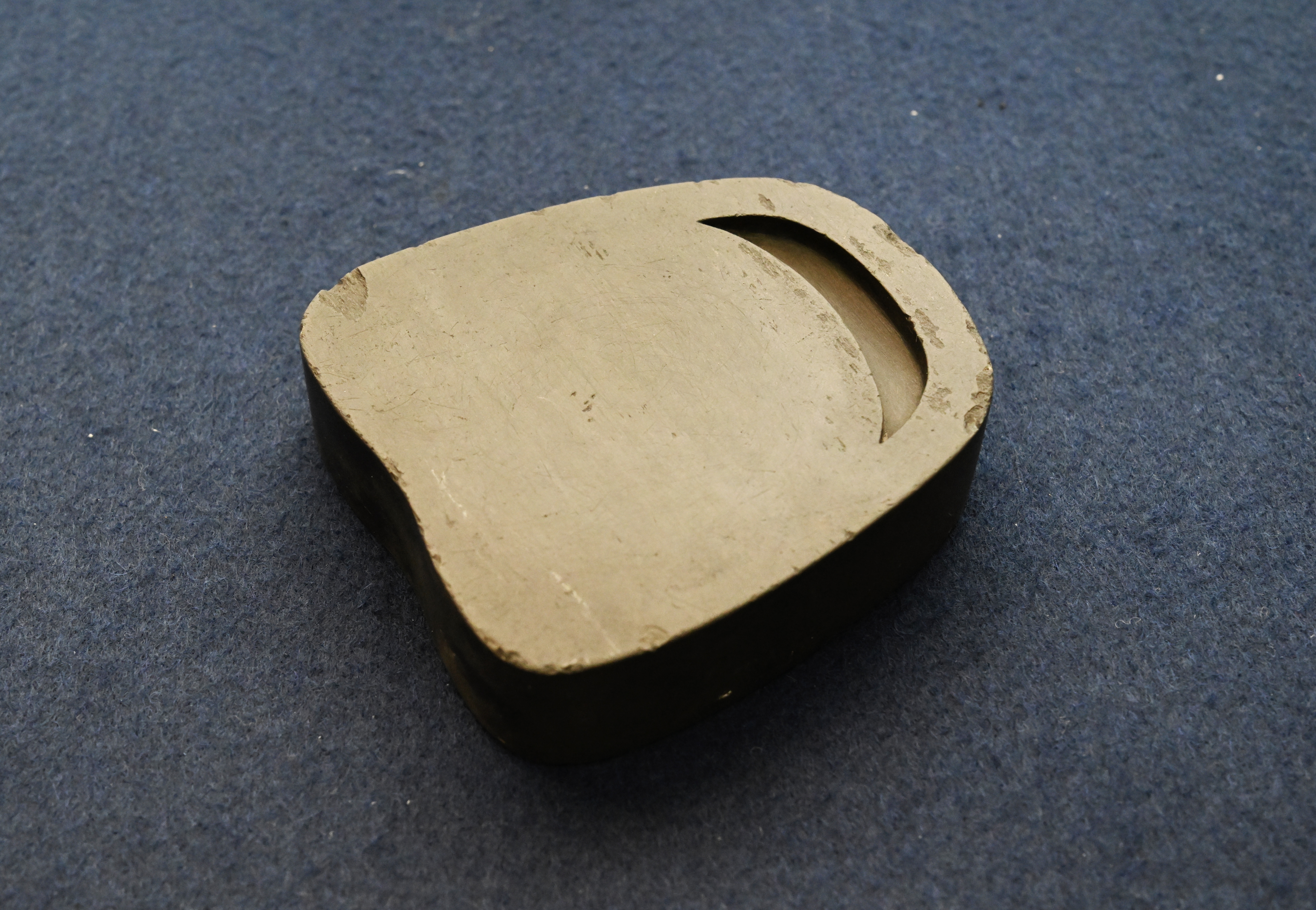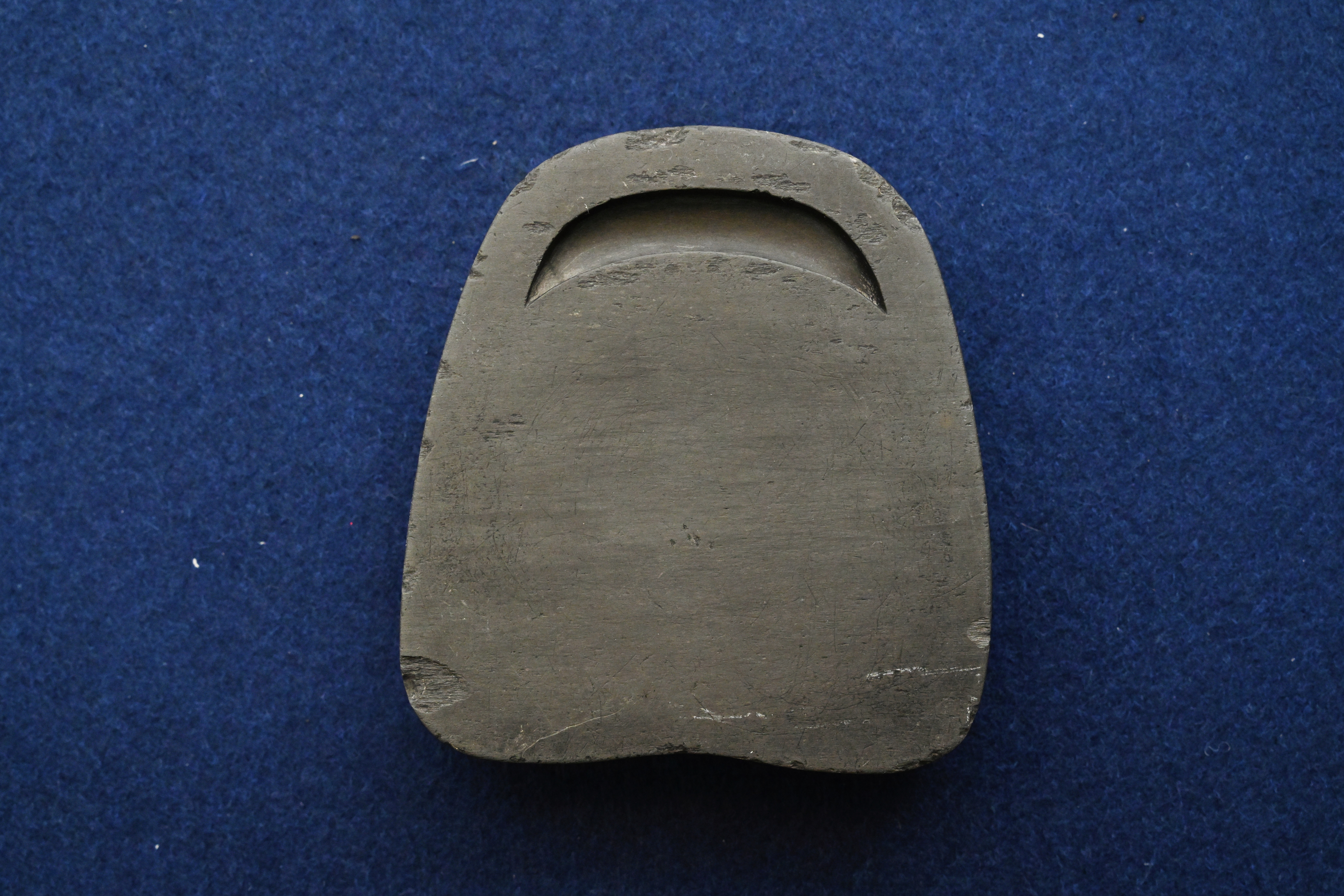 作为文房重器,这方砚台是古代文人书写、研墨的核心工具。弯月形墨池可蓄墨防干,风字形砚面便于持笔研磨,石质细腻温润,发墨快而不损笔,既实用又兼具赏玩价值,是文人案头不可或缺的 “笔墨知己”。