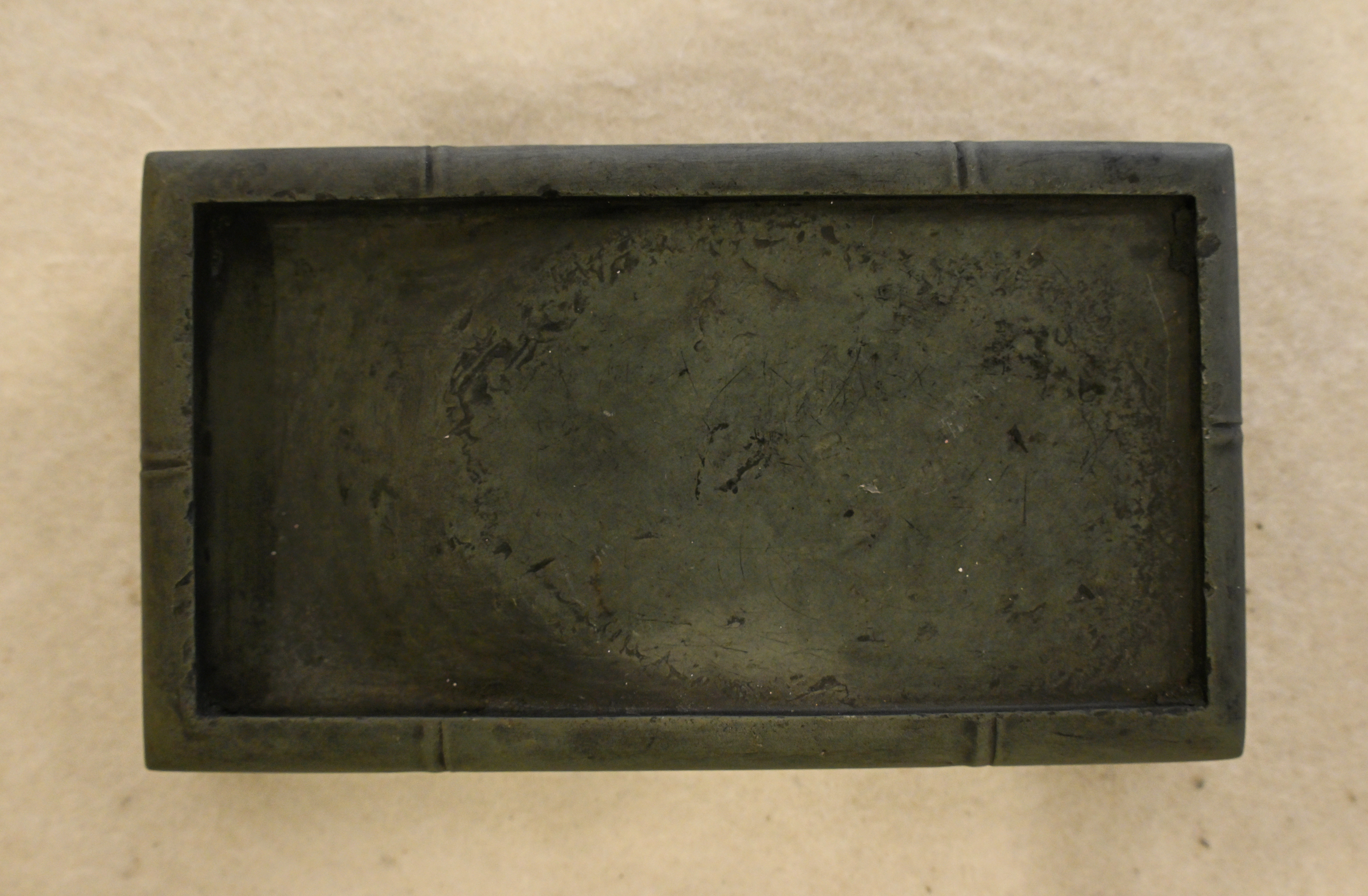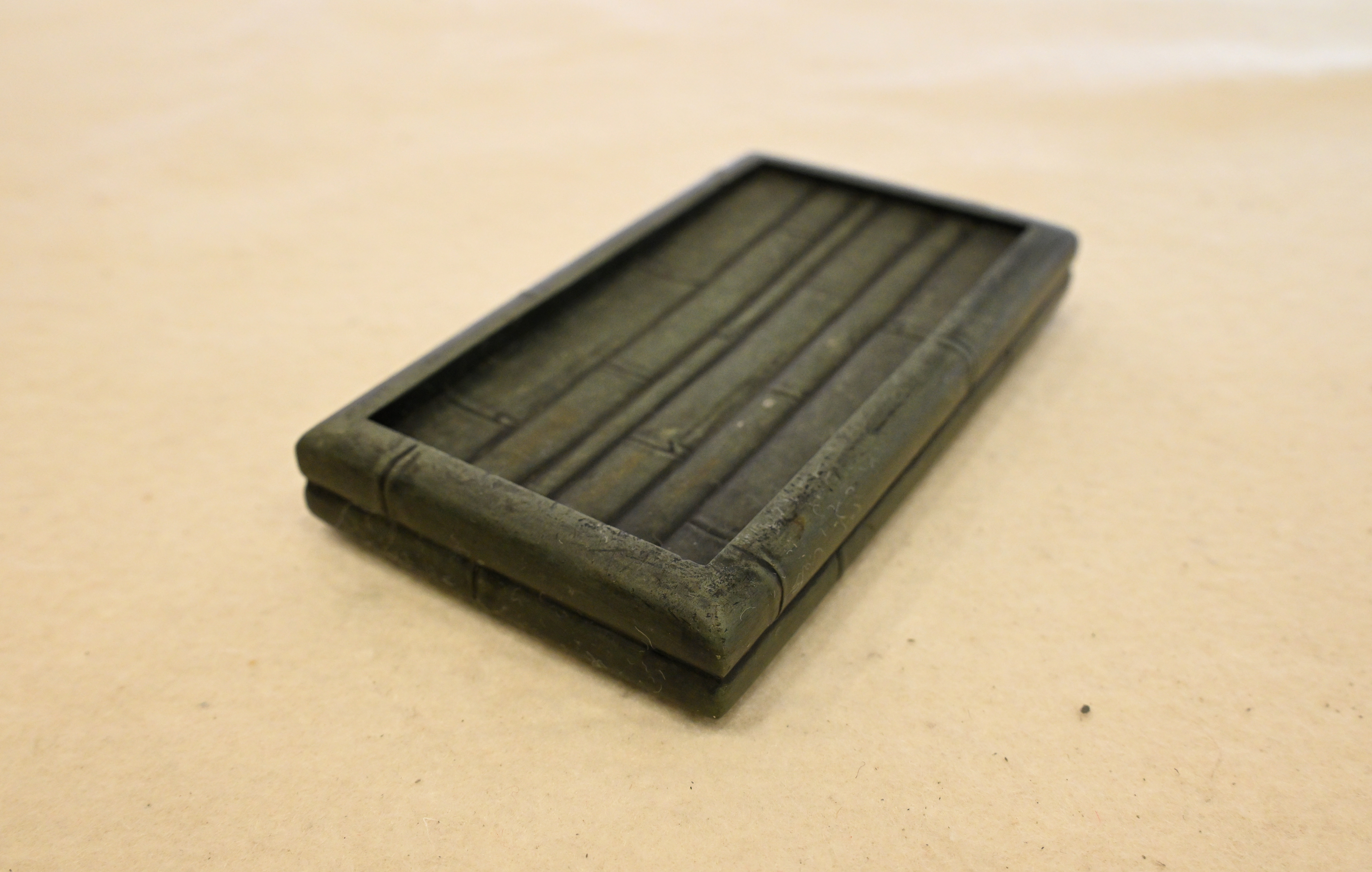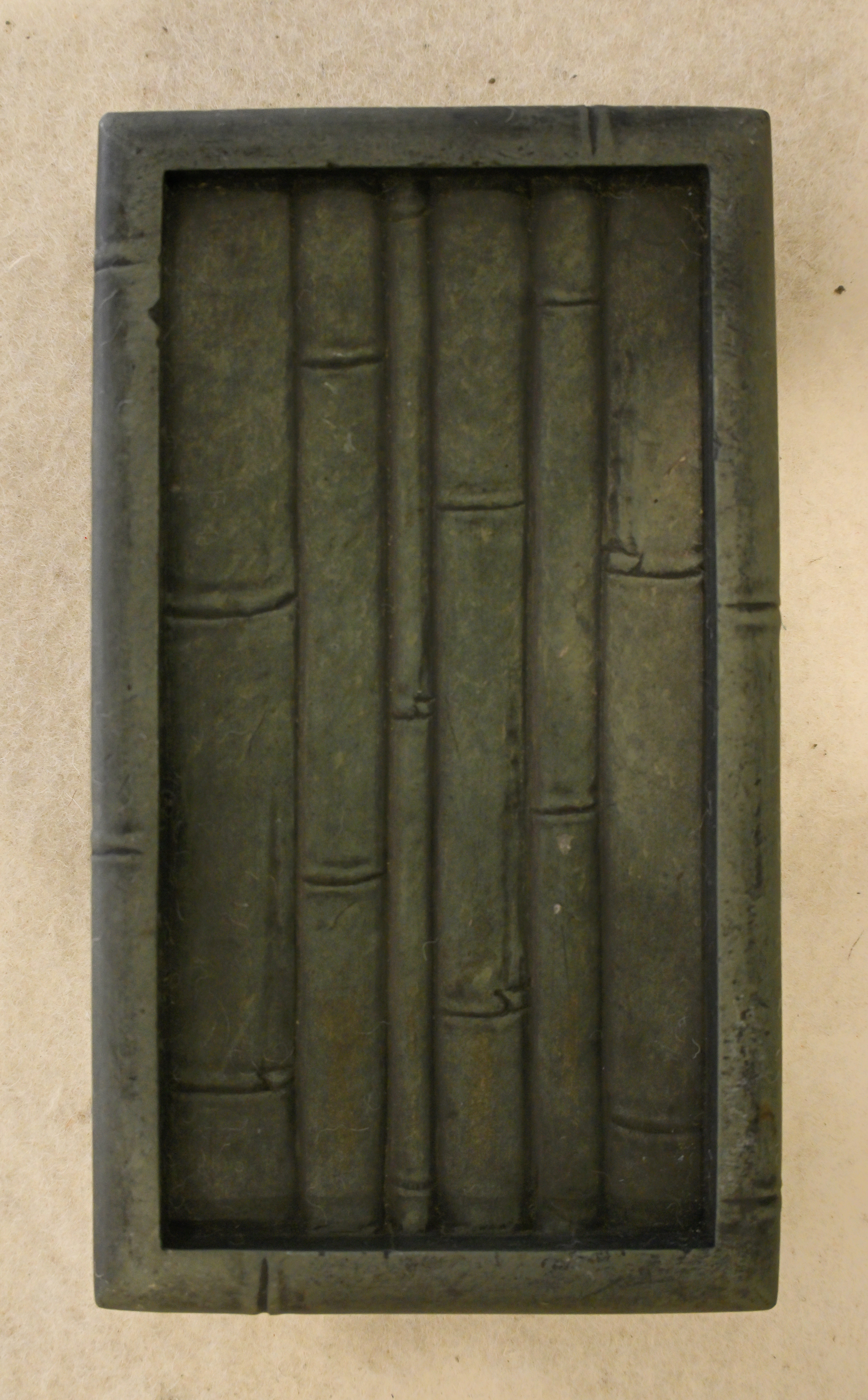 从功能上看,竹节砚实用性极强。其砚膛平坦开阔,能够容纳较多墨汁,满足文人书写、绘画时的用墨需求。砚池的设计也十分巧妙,与砚膛相得益彰,便于贮水和研磨墨块。当墨块在砚堂中缓缓磨动,墨香与砚石本身的古朴气息交织在一起,营造出一种宁静而悠远的氛围。