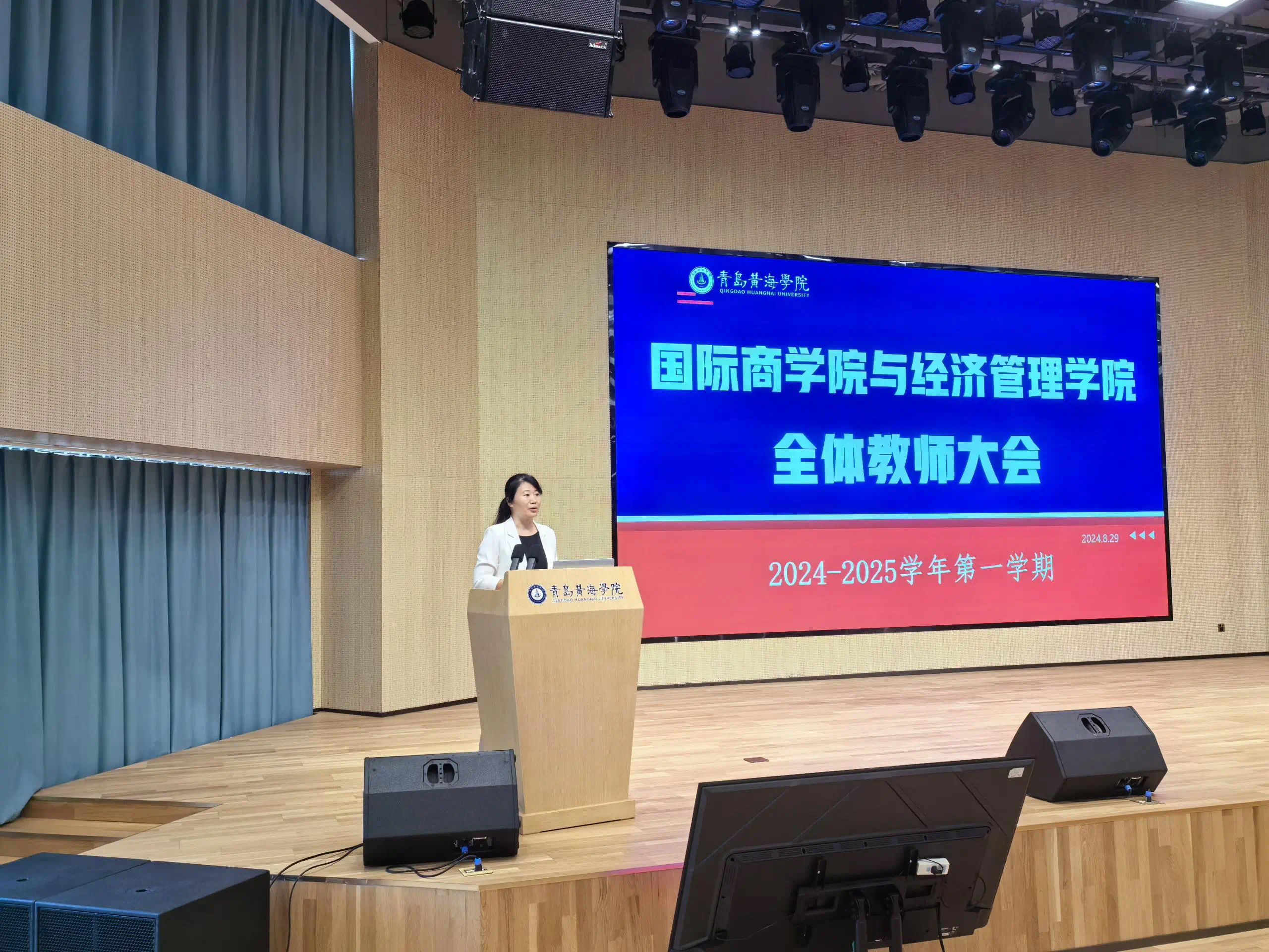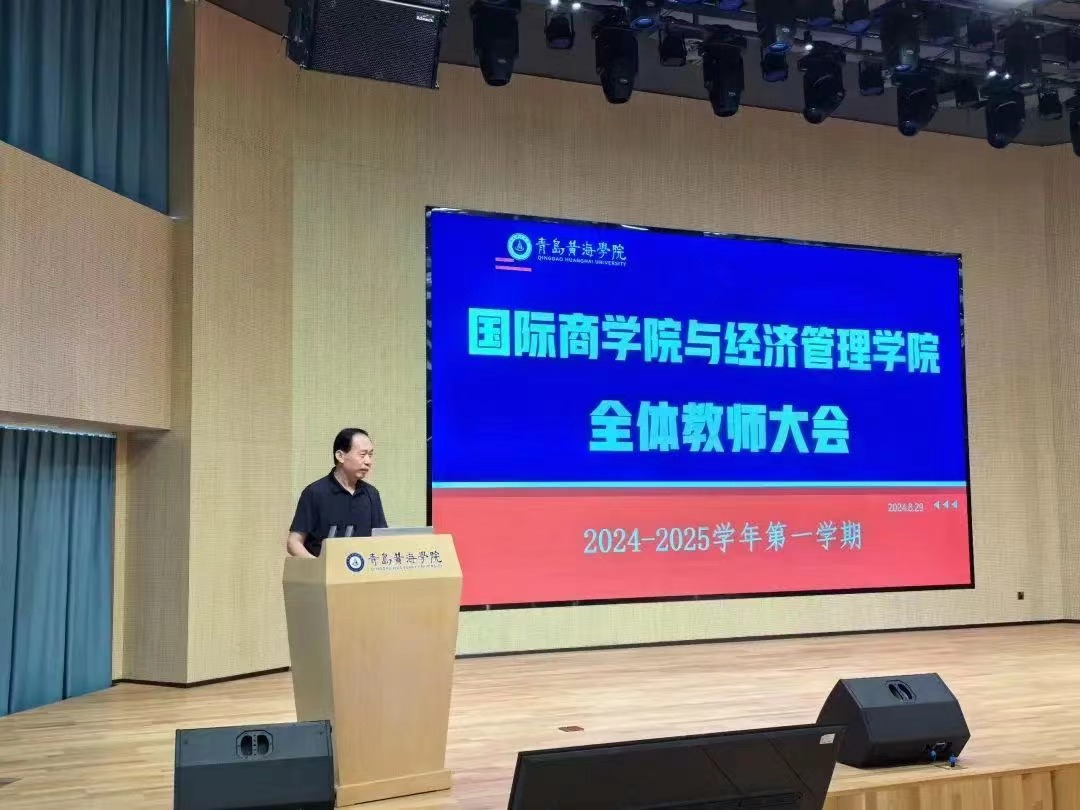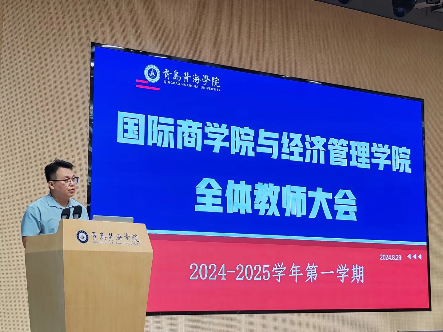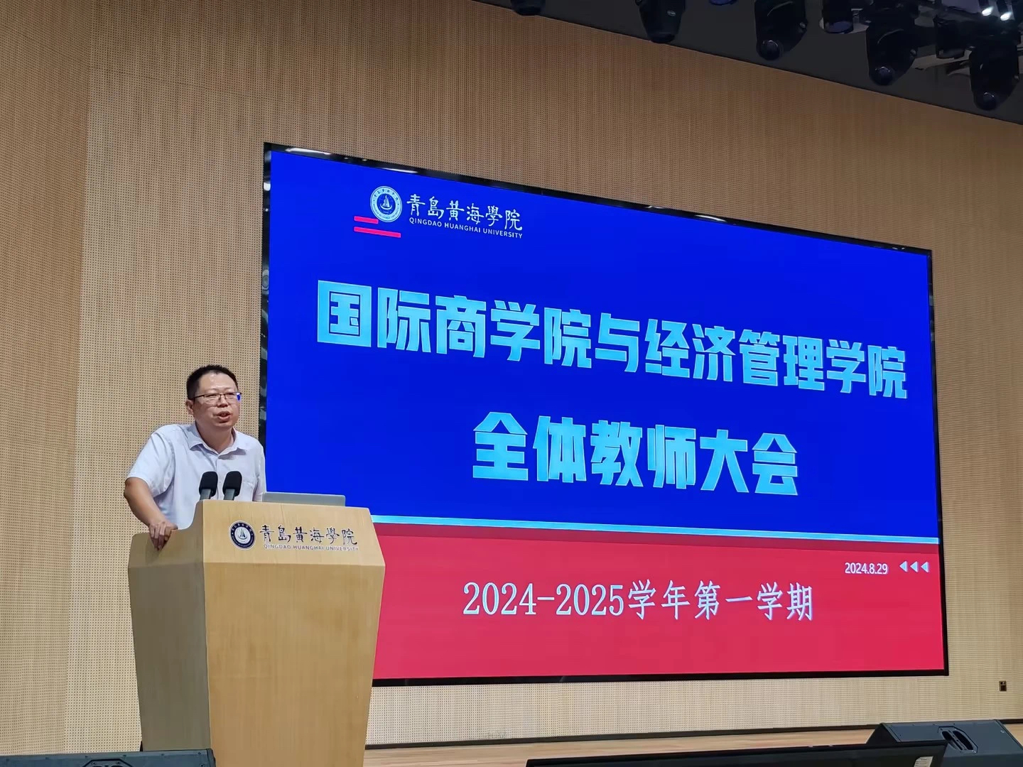 为统一思想、凝心聚力,全力以赴迎接教育部本科教育教学审核评估,进一步加强和改进教学管理工作,切实有效推进教学工作安排,保证新学期教育教学各项工作顺利开展。8月29日下午,国际商学院与经济管理学院2024-2025学年第一学期全体教师大会在知信楼306报告厅召开。会议由国际商学院常务副院长孙兆忠主持,国际商学院与经济管理学院全体院领导、教职工参加会议。