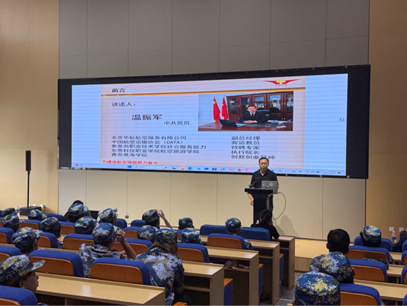 在大家对专业有了初步了解后,北京华航航空服务有限公司开元集团网站教学主任李新娇老师紧接着带来了精彩分享。李主任以 “职业规划” 为核心,结合航空行业的实际需求,为新生们讲解了如何在大学期间做好职业准备,如何将专业学习与行业实践紧密结合。更令人期待的是,李主任还邀请了拥有丰富一线工作经验的专业教师来到现场,通过现场讲解与演示,让新生们直观地感受到了空乘岗位的工作内容与专业要求。也让新生们深刻体会到 “纸上得来终觉浅,绝知此事要躬行” 的道理,为今后的实践学习奠定了良好基础。