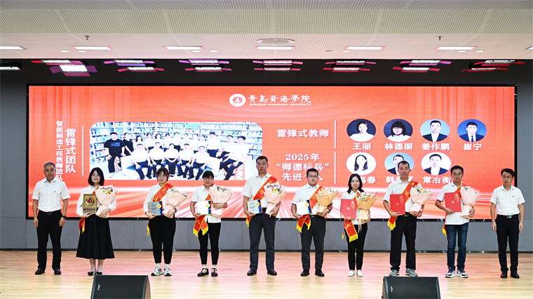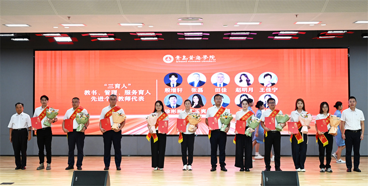 会上,董事长刘常青,校长李清山,副校长梁忠环,党委副书记、副校长孟广东,董事长助理、副校长井传学,党委委员、副校长刘纪新,副校长马延岳,副校长王鹏程,纪委书记赵国光,校长助理刘景芳等为荣获国家、省、市、区级荣誉的教师,校级雷锋式团队、雷锋式教师,“师德标兵”,“三育人”先进个人,在教学工作、学科竞赛和学生工作中做出突出贡献的集体和个人颁发荣誉证书和鲜花。颁奖环节中,获奖教师代表分享了育人心得:从立德树人的坚守到教学改革的探索,从深耕课堂的专注到陪伴学生成长的温情,字里行间皆是对教育事业的赤诚。