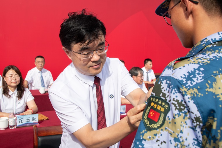 党委委员、副校长刘纪新讲话。他代表学校,向承担本次军训任务的全体教官表示感谢并致以崇高的敬意!向参与军训的老师、学生教官、同学们表示亲切的问候!为圆满完成此次军训任务,他向同学们提出几点希望:一是以军训之名,铸牢报国之志;二是以军训之行,锤炼刚毅之躯;三是以军训之艰,砥砺坚韧之品;四是以军训之严,凝聚团结之心,深刻理解团结协作对于国家发展和民族复兴的重要意义。