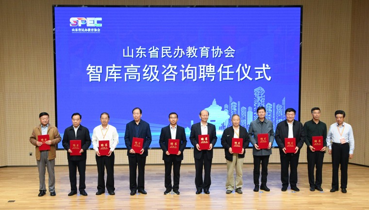 会议举行了山东省民办教育高质量发展智库成立仪式。山东省民办教育协会副会长、山东工程职业技术大学校长吴梦军宣读《关于成立山东省民办教育高质量发展智库及聘用人员的决议》。盛振文会长为智库高级咨询颁发聘书。
