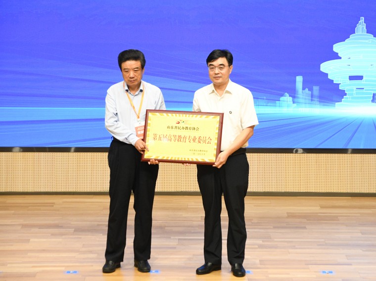 随后,会议进行高专委成立仪式。山东省民办教育协会执行副会长、山东文化产业职业学院董事长李京平宣读《关于同意成立山东省民办教育协会第五届高等教育专业委员会的函》。盛振文会长为高专委授牌,并为主任委员、副主任委员和秘书长颁发聘书。