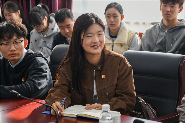 在师生座谈会现场,郭明义与师生代表面对面亲切交流。