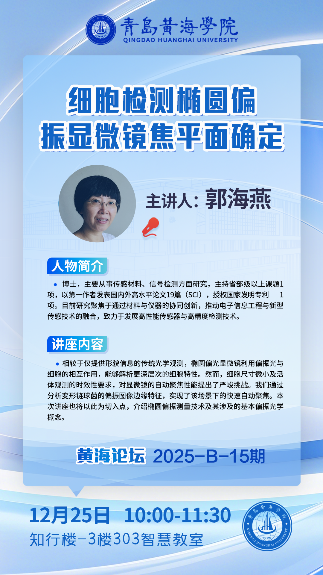 讲座题目:细胞检测椭圆偏振显微镜焦平面确定