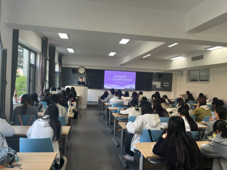 4月15日,青岛西海岸新区富春江路幼儿园韩梅主任走进2023级学前教育本科课堂,以《从校园到职场——就业选择与备考指南》为主题,围绕考研、考公考编、自主创业三大方向展开讲解,帮助学生明晰备考方向。