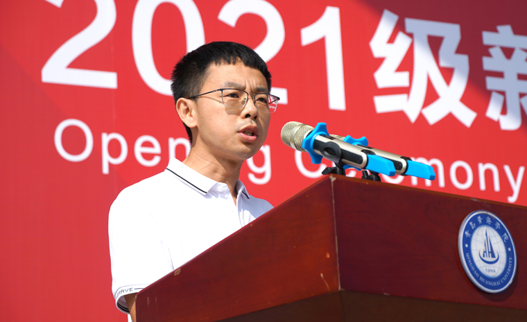 教师代表常冶衡老师首先发言,他代表全体教师对所有新生的到来表示热烈欢迎,并寄语新生们在成长的道路上,都能学会坚持和拼搏,在探索中不断得到深度感悟。