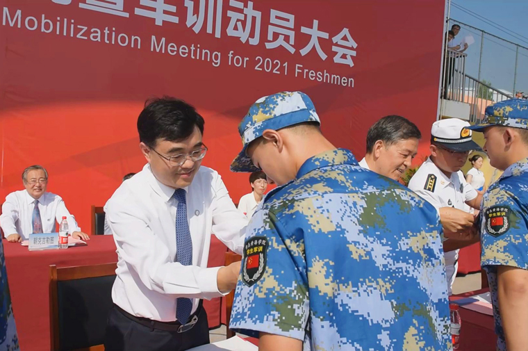 学校董事长刘常青、校长王渊明、党委书记邢桂强等校领导班子成员、承训部队首长、各二级学院及有关部门负责人出席大会并在主席台就座。2021级全体新生参加了大会。