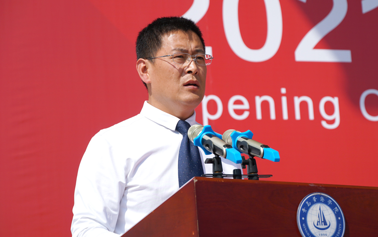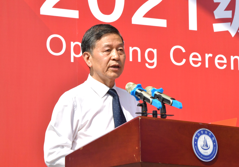 校长王渊明在典礼上代表学校向全体新同学表示热烈欢迎,并以“乘风新时代,逐梦新征程”为主题,为2021级新生上了一堂有思想、有温度、有情怀的开学第一课。他说:“你们的加入,将给学校带来新的活力、激情和智慧,推进学校建设成为探究真理、激扬青春的理想之地,成为应用型人才成长的沃土!”