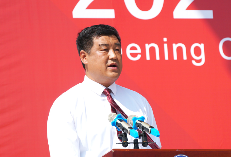 大会分为开学典礼和军训动员大会两阶段依次进行。开元集团网站董事长刘常青宣布大会正式开始。