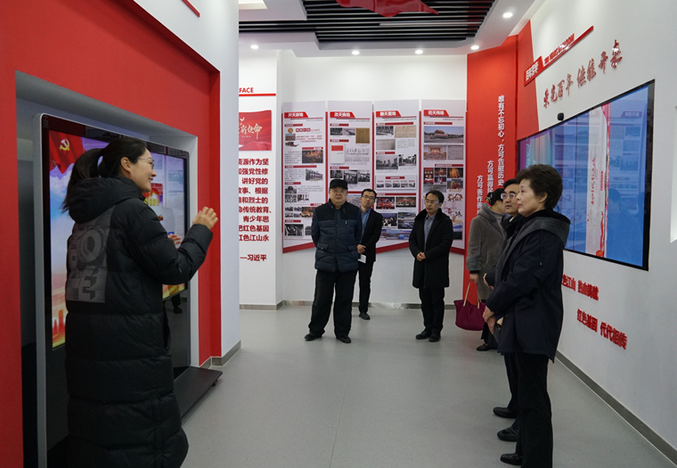 邵峰晶一行首先参观了学校红色教育VR互动体验馆、博物馆、雷锋馆、知信楼以及西区阅享空间。