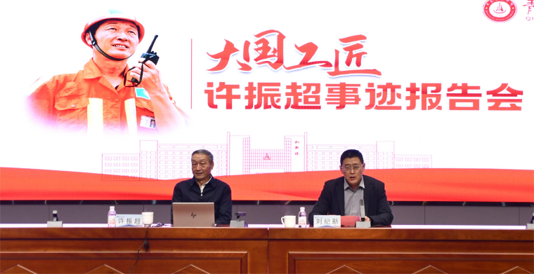 校长助理刘纪新代表与会师生向许振超表示诚挚感谢。他表示,许振超教授从国家的要求、发展的趋势、职业教育的支持出发,结合自身工作经历,生动诠释了不服输、爱学习、持之以恒、精益求精的大国工匠精神,在当今百年未有之大变局,更需要同学们以大国工匠为奋斗目标,以许振超教授这样的优秀建设者和开拓者为榜样,多看、多学、多想、多问,能干、会干、巧干、快干,不断磨砺自己,早日成为建设祖国的栋梁之材。