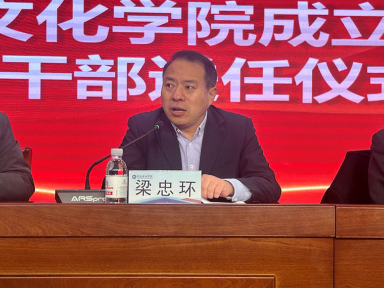梁忠环热烈祝贺语言文化学院成立,他指出,语言文化学院的成立是立足于学校工作大局,并结合学校发展需要,经过慎重考虑后做出的重要决定。期待未来在学院领导班子带领下全体教职工在教学、科研、管理、基本建设等方面取得更多成绩,为学校的改革发展做出积极贡献。