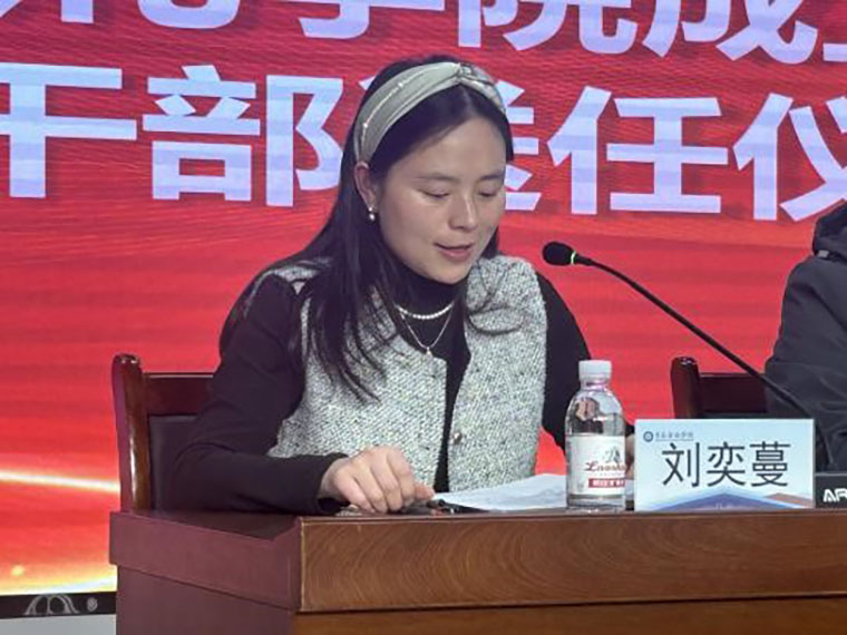 语言文化学院副院长刘奕蔓在会上做表态发言,她表示在未来的工作中将继续时刻秉承“以学生为本”的理念,紧紧围绕学生工作的“一个中心”“三全育人”“劳动教育”等内容认真开展工作。牢固确立“人才培养”在学生工作中的根本地位,深化内涵,科学规范管理。围绕学院发展目标,积极配合工作,认真履行职责,为学院工作保驾护航,营造和谐向上的工作氛围。
