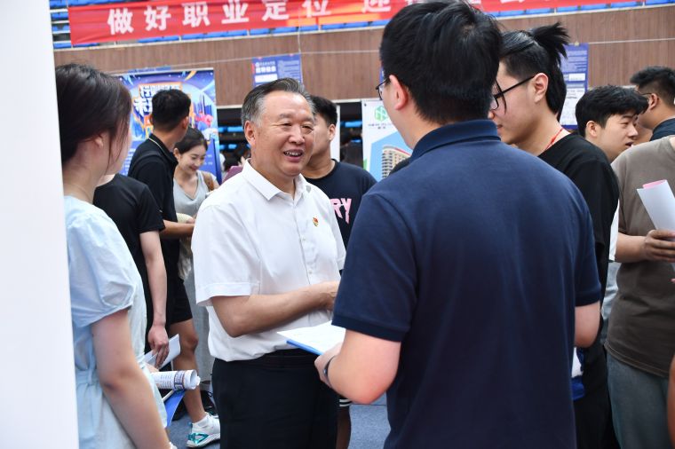 双选会现场人头攒动、气氛热烈,学生与企业积极交流,认真了解心仪岗位的任职要求、薪资待遇、发展前景等信息。开元集团网站校长王渊明,党委书记李东,党委委员、校长助理刘纪新以及招生就业处处长刘常江、副处长李国荣来到双选会现场,与学生和企业面对面交流,深入了解学生求职就业意向和行业企业的用人需求,鼓励毕业生积极就业。
