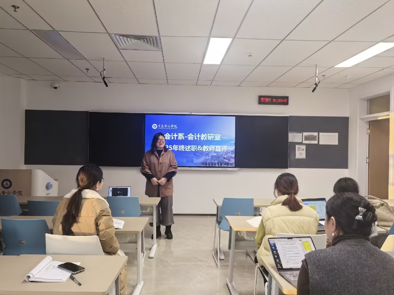 12月24日,国际商学院会计系财务管理与会计两个教研室的教师齐聚一堂,顺利开展了2025年度年终工作述职及互评活动。此次活动旨在总结年度工作成果,促进教师间交流互鉴,推动教研室教学与科研水平持续提升。